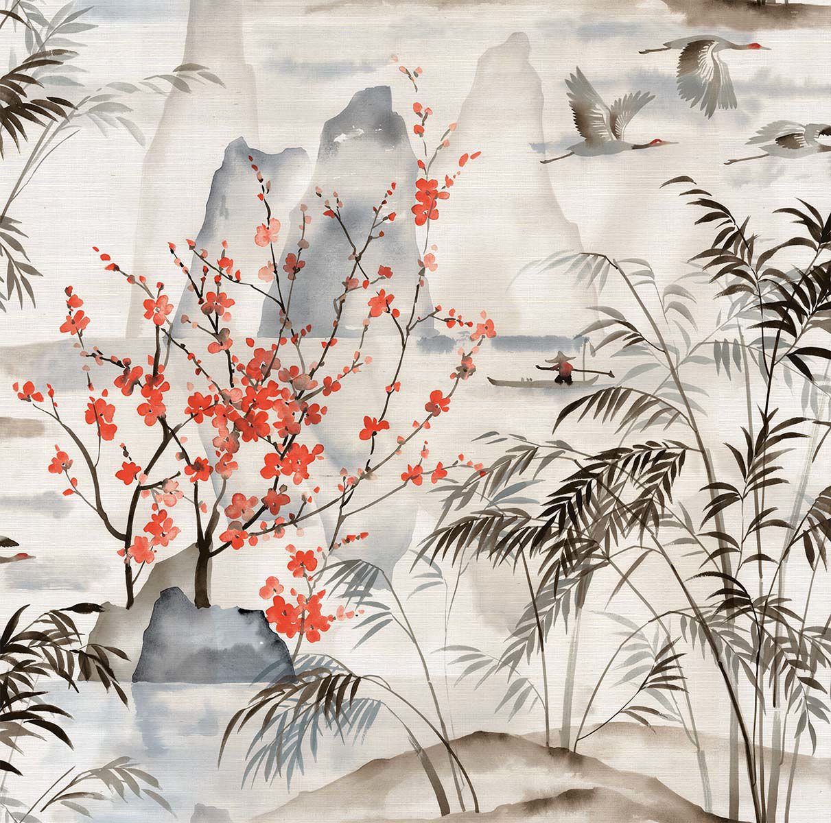 Spring Festival | Warm Neutrals and Beiges Asian and Chinoiseries Wallpaper for Entryway, Office, and Powder Room