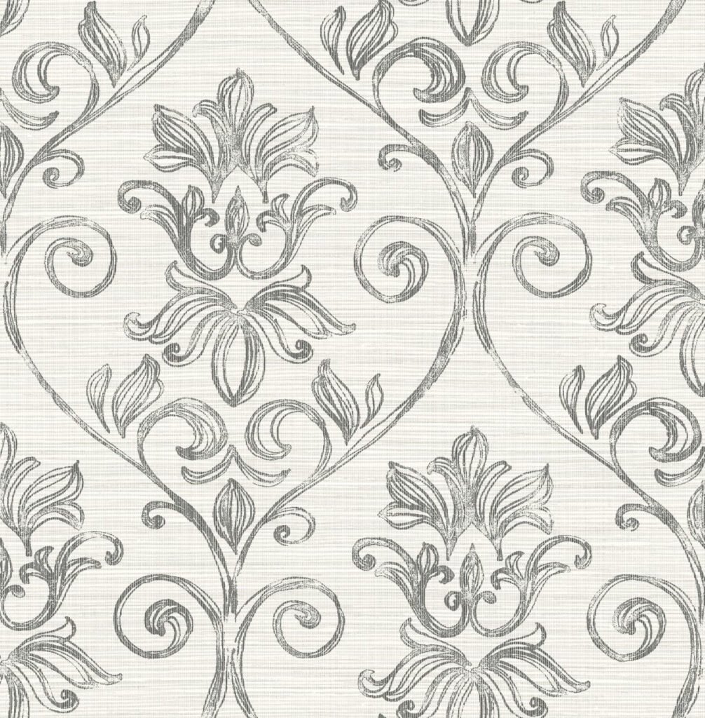 Seward – Dalmatian | Blacks Damasks and Scrolls Wallpaper for Entryway, Nursery, and Living Room