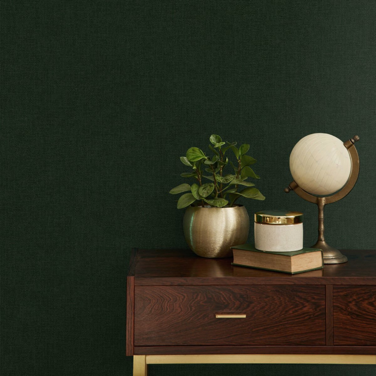 Tailored Linen – Forest Green | Greens Textures Wallpaper for Dining Room, Kitchen, and Nursery