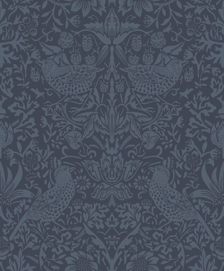 Tonal Aves Garden – Denim | Blues Damasks and Scrolls Wallpaper for Dining Room, Office, and Accent Wall