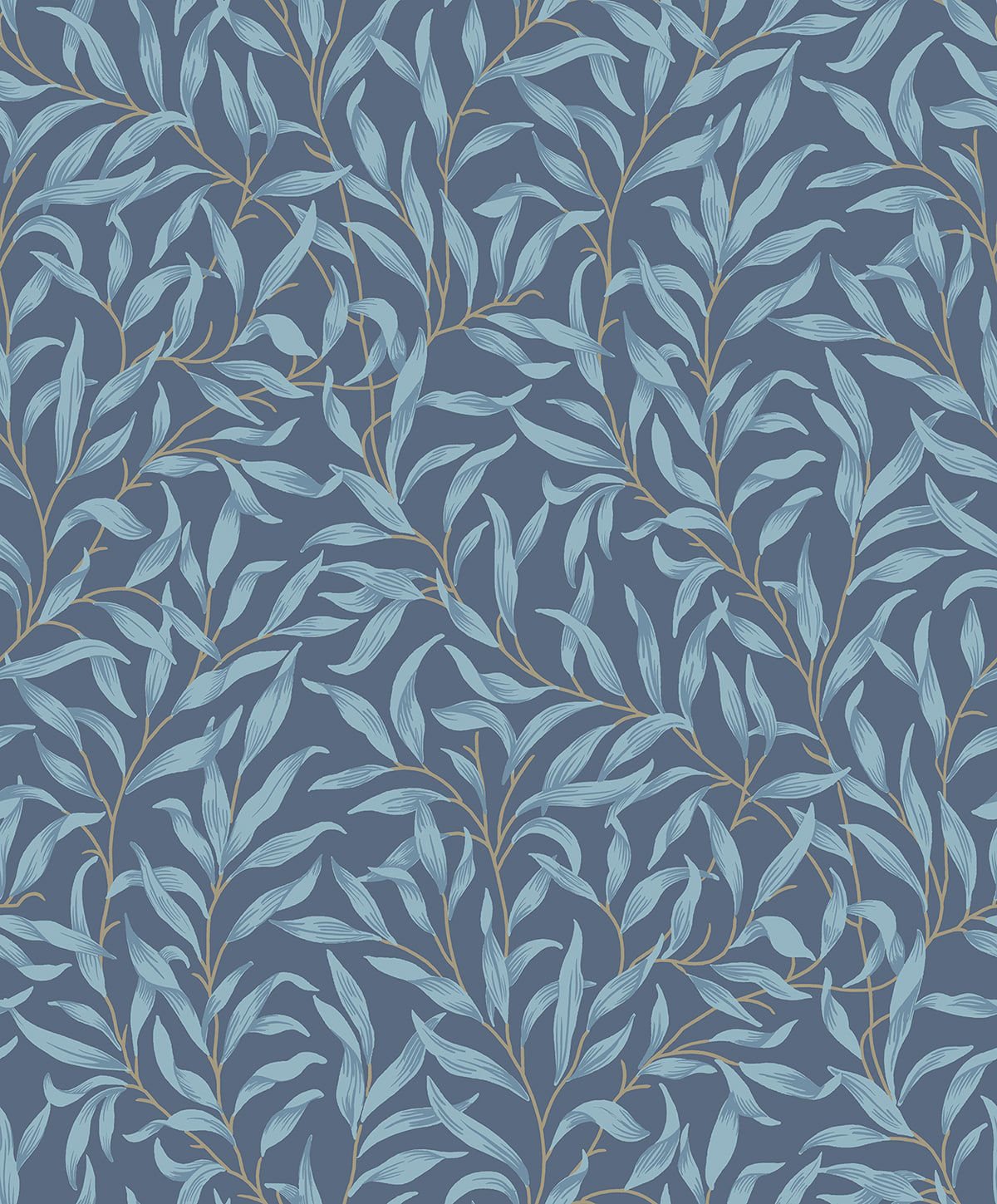 Willow Leaf Trail – Blue Oasis | Blues Trees and Leaves Wallpaper for Powder Room, Kitchen, and Half Bath